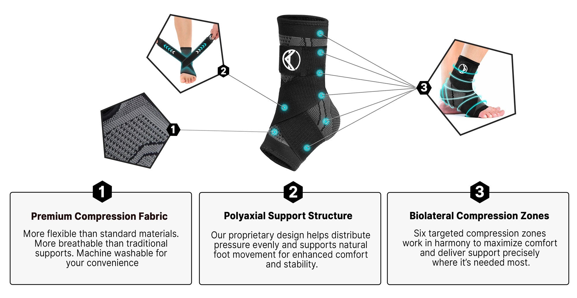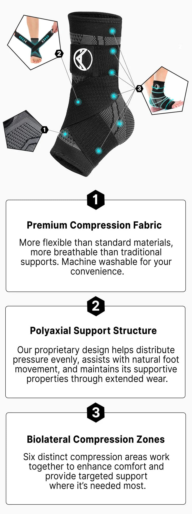 Our versatile, movement-responsive design uses six different compression zones that help enhance blood flow four times more than conventional compression. This specialized technology provides consistent support while allowing natural foot motion, helping to maintain comfort during daily activities and potentially reducing discomfort over time.